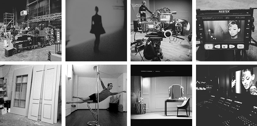 Our idea was to create a whole universe in which our beautiful heroine could glide gracefully, whether in reality: in her own Parisian apartment or in this dreamy charcoal Paris. We shot everything in studio and then created the whole world in post-production. A dancer stand-in was used for all the acrobatic sequences.