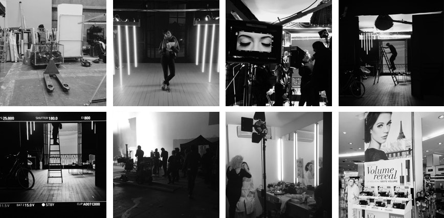 For this new campaign, the decision was made to cast a french actress whether than a beauty model. When we met Dorcas, we all knew she was made to embody the Bourjois girl. Her beauty and grace together with her daring look and impertinence, and her sexy french accent on top, she was perfect. We created her gigantic, contemporary Haussmann apartment in a studio and shot the whole spot in a day.